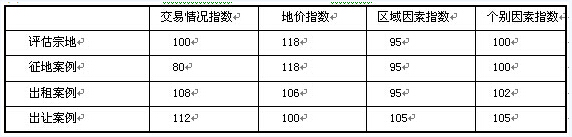 (6)征地、出租和出讓宗地與待估宗地比較情況,除開發程度差異外,其他因素比較表為: