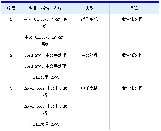 (二)申報評審中級資格的考3科,其中操作系統、中文處理2科為必考科目,第3科在3―13類中自選。