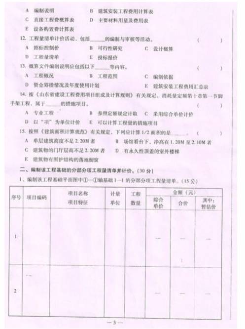 山東2013年造價員考試《建筑工程編制與應(yīng)用》真題