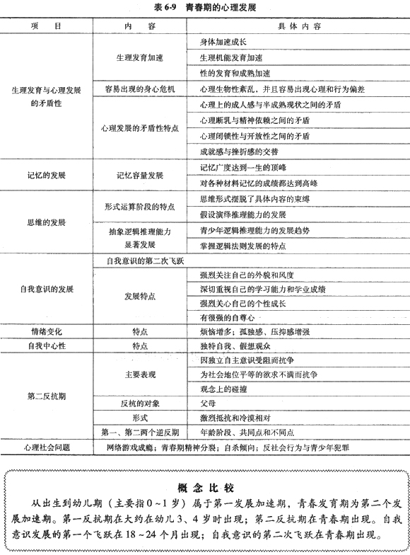 青春期心理發展的內容見表6-9。