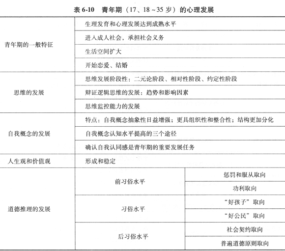 青年期的心理發展見表6-10。