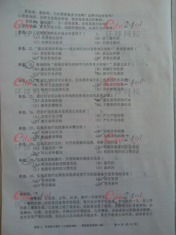2013年5月心理咨詢師二級專業(yè)技能考試真題