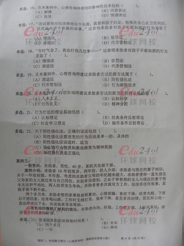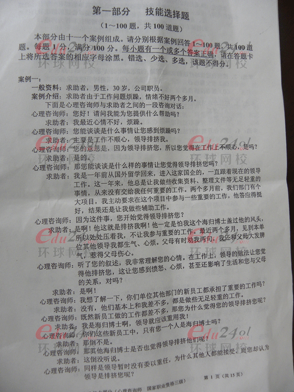 2013年5月心理咨詢師考試三級專業技能考試已經結束,為了讓考生盡早了解此次考試情況。環球網校在第一時間為考生及學員整理了真題,近期網校將安排上線,全套真題點評也將于近期安排。請大家隨時關注!網校預祝學員們能夠取得好成績。