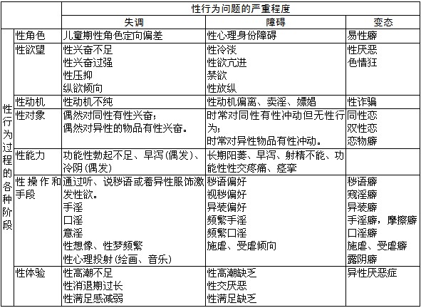 性行為問題在臨床上表現的多種多樣。對各式各樣性問題,以往基本按精神病學的原則進行分類。但是,咨詢心理學為了心理咨詢的實際操作,不能照搬精神病學的分類,因為許多嚴重的性變態患者,已經超出心理咨詢的范圍。另外,對待一般性行為問題的求助者,咨詢心理學的學術理念、處理方式以及臨床操作,與精神病學并不完全相同。比如對待同性戀者,精神病學已經將其排除在精神病之外(見CCMD-3),不認為它是異常心理和行為;但咨詢心理學仍然認為它是心理不健康的狀態,對這類求助者必須予以心理學幫助。為此,為了咨詢心理學臨床實踐需要,只好對性行為問題確定另外的分類方法。我們按“認知心理學”對性行為的解釋,以及性行為問題的嚴重程度,可對性心理問題作如下分類(見表6-1)。