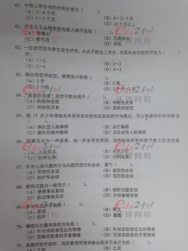 2013年11月心理咨詢師考試二級理論知識考試已經結束,為了讓考生盡早了解此次考試情況。環球網校在第一時間為考生及學員整理了真題,近期網校將安排上線,全套真題點評也將于近期安排。請大家隨時關注!網校預祝學員們能夠取得好成績。