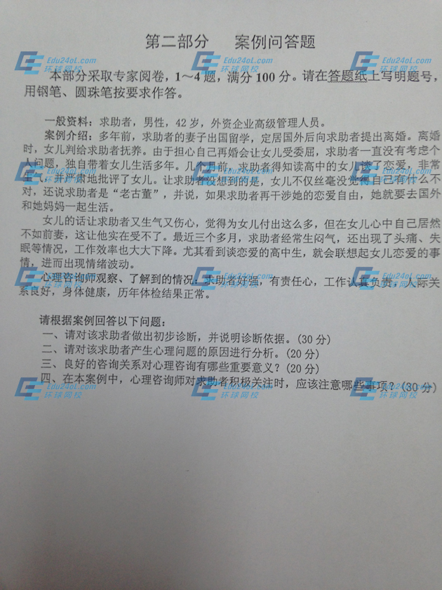 摘要 2014年5月心理咨詢師三級專業技能考試真題,由環球網校心理咨詢師頻道為您提供!轉載請注明出處!