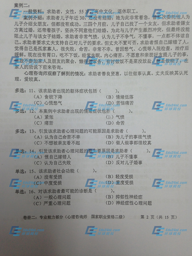 摘要 2014年5月心理咨詢師二級專業技能考試真題,由環球網校獨家發布,轉載請注明出處!