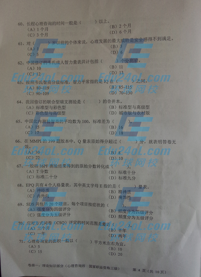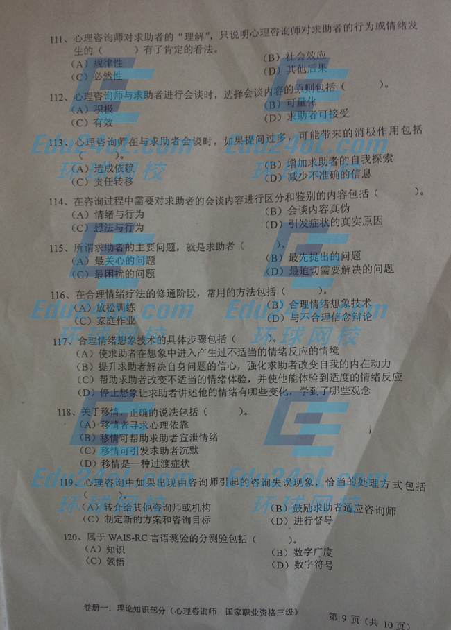 摘要 2014年11月三級心理咨詢師考試理論知識真題,由環(huán)球網(wǎng)校心理咨詢師頻道獨家整理發(fā)布,如需轉(zhuǎn)載請注明出處!
