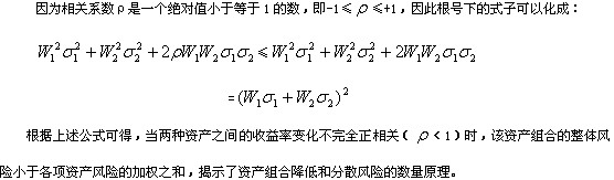 2.如果組合資產中各資產存在相關性,則風險分散的效果會隨各資產間相關系數有所不同: