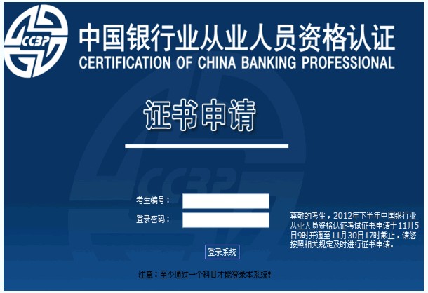 2012下半年銀行從業(yè)資格考試證書申請(qǐng)入口