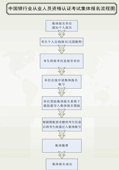 摘要 銀行從業資格考試集體報名流程圖,通過中國銀行業協會網站進行。
