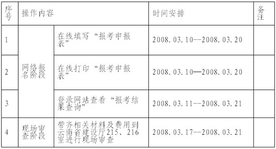 6、按“報考申報表”附注的要求,攜帶相關材料(均用A4紙)及報考費交到各州、市建設行政主管部門;
