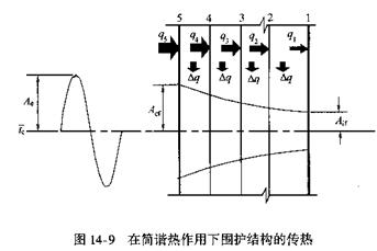 溫度波在傳遞過程中出現(xiàn)的衰減和延遲現(xiàn)象,是由于在平壁升溫和降溫的過程中,材料的熱容作用和熱量傳遞中材料層的熱阻作用造成的。
