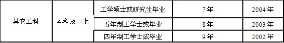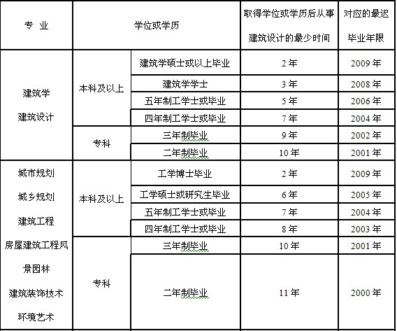 (2)不具備上表所規定學歷的申請報名考試人員應從事工程設計工作滿15年且應具備下列條件之一:
