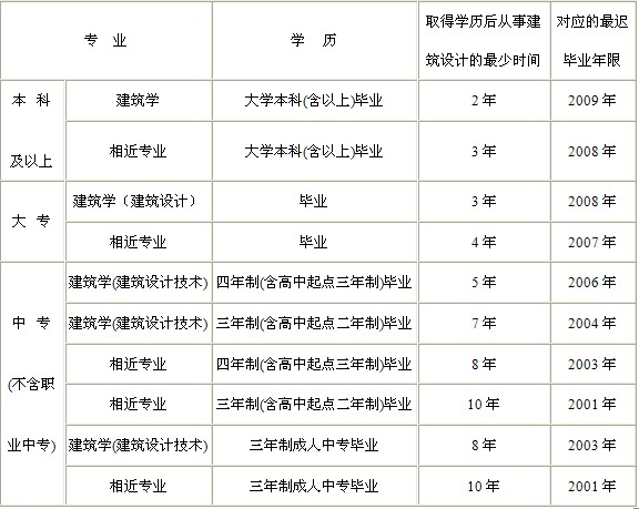 (二)2011度全國二級注冊建筑師資格考試首次報考人員需滿足下列條件之一: