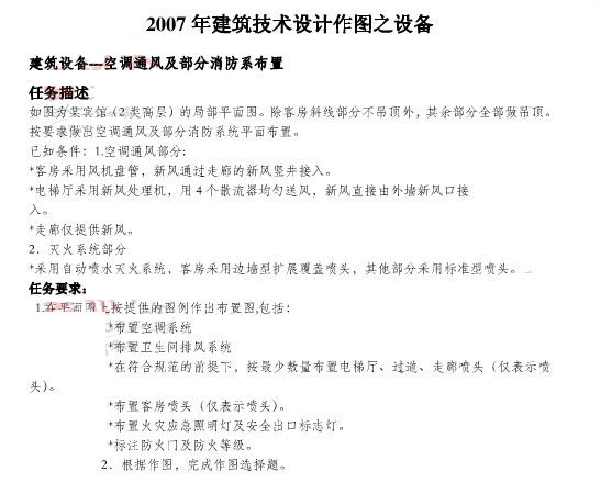 2007年一級建筑師考試技術設計作圖(設備)真題