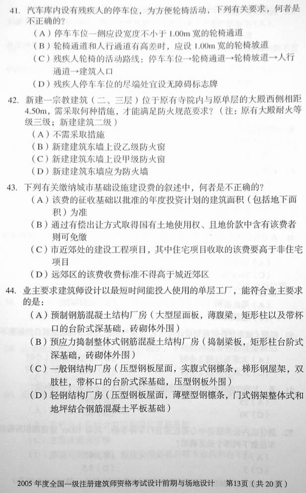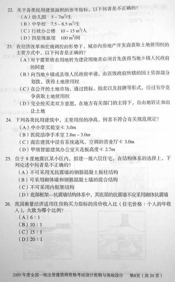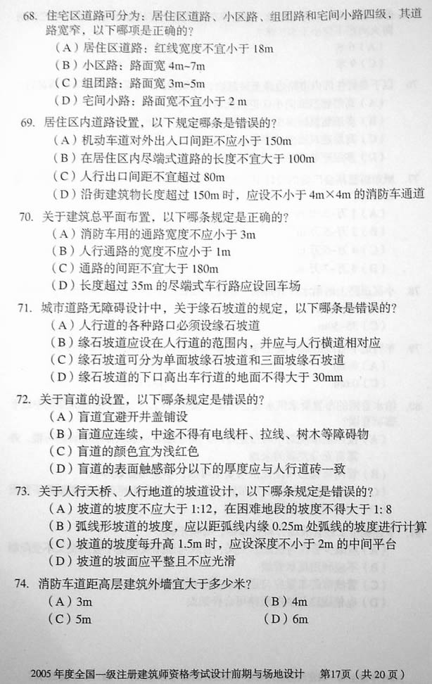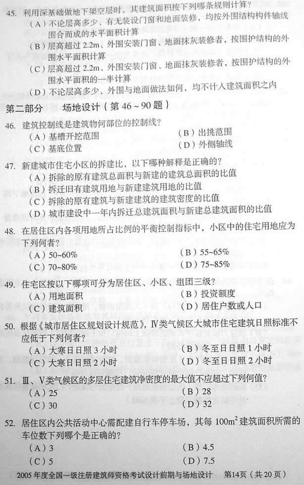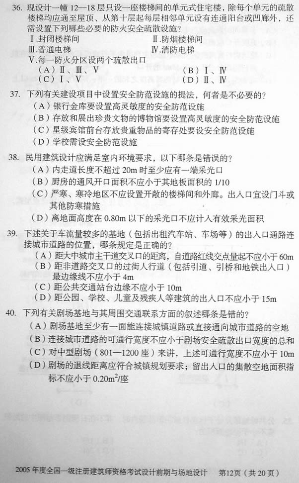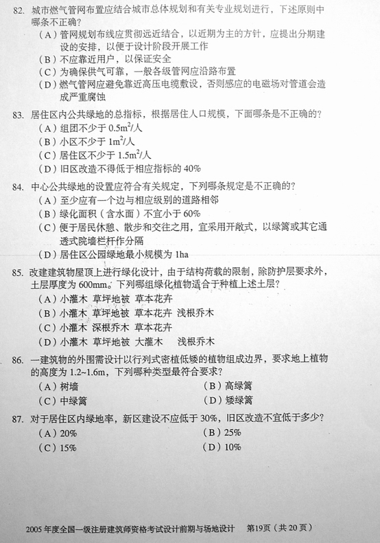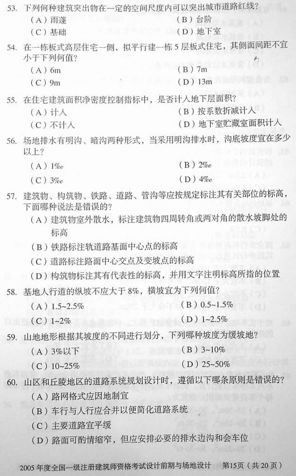 2005一級(jí)建筑師《設(shè)計(jì)前期與場(chǎng)地設(shè)計(jì)》真題