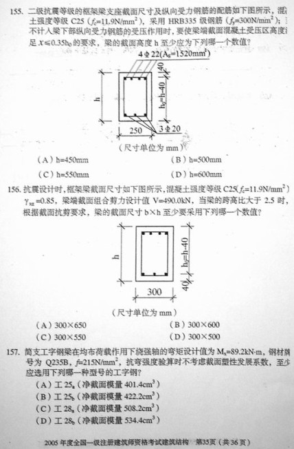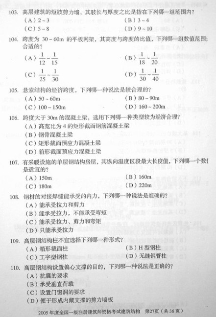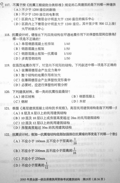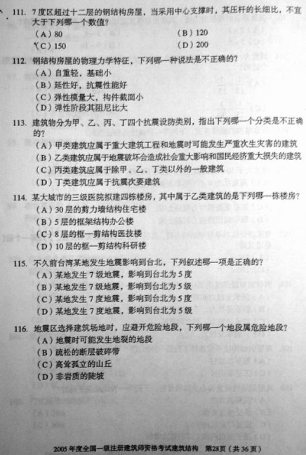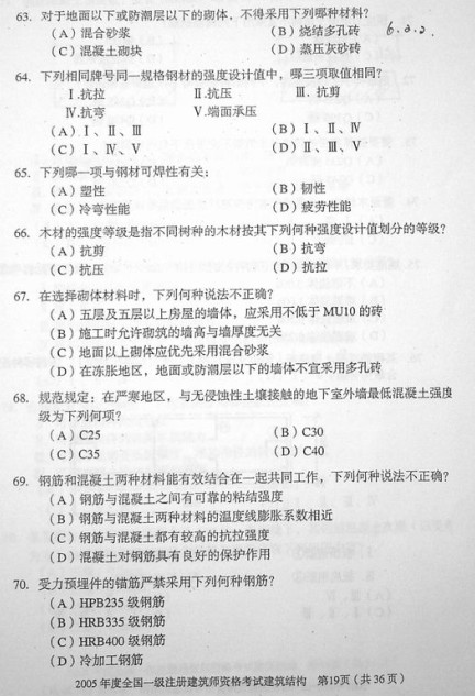 摘要 2005年一級建筑師考試《建筑結構》真題,供廣大考友練習提高。