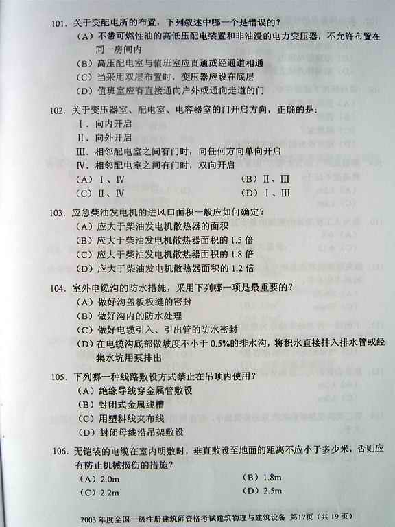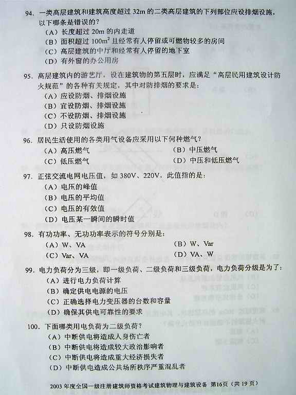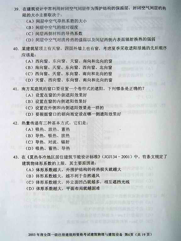 2003年一級(jí)建筑師考試《建筑物理與設(shè)備》真題