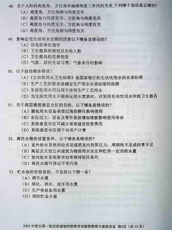 摘要 2003年一級(jí)建筑師考試《建筑物理與設(shè)備》真題,供廣大考友練習(xí)提高。
