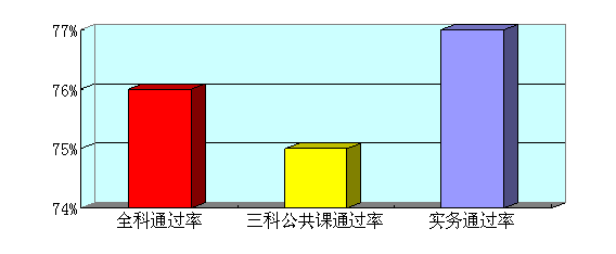 報名網校學習全科即三科公共課和一科專業課并最后全部通過的學員占所有報名全科學習總人數的比率為76%。