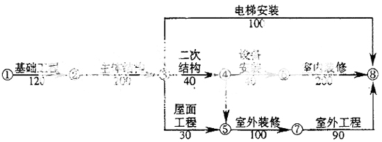關鍵線路:①→②→③→④→⑥→⑧(或答基礎工程、主體結構、二次結構、設備安裝、室內裝修)( 1 分)