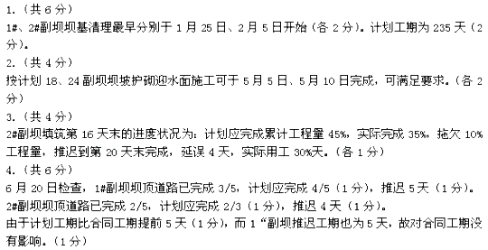 上游翼墻及鋪蓋的澆筑次序不滿足規范要求(2分)。合理的施工安排包括:鋪蓋應分塊間隔澆筑(2分);與翼墻毗鄰部位的1#和10#鋪蓋應等翼墻沉降基本穩定后再澆筑(2分)。