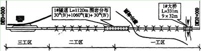 某集團(tuán)公司承擔(dān)一項(xiàng)大型鐵路工程。工程內(nèi)容主要包括32公里新建雙線鐵路土建工程及全線120雙線公里的鋪架工程。其中:接軌站有少量填方工程,具有現(xiàn)場(chǎng)制梁條件及設(shè)置鋪軌基地條件;1#大橋下最大水深6.0米,覆蓋層厚2.0~4.0米,樁基入巖,高樁承臺(tái)頂與常水位平齊,施工期間不通航;l#隧道無(wú)不良地質(zhì),有增設(shè)橫洞條件。此工程要求2006年10月1日動(dòng)工,2007年9月1日開始鋪架,2009年6月30日全線竣工。工程簡(jiǎn)圖如下: