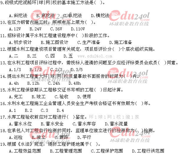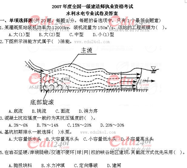 2007年一級建造師考試水利水電專業(yè)試卷(1)