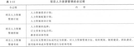 項目人力資源管理的全過程見表1―11。