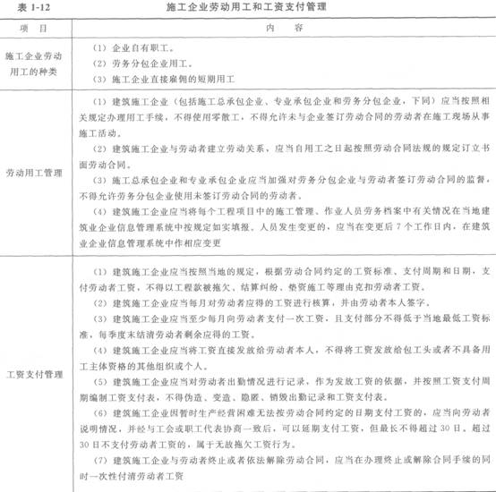 施工企業勞動用工和工資支付管理見表1―12。