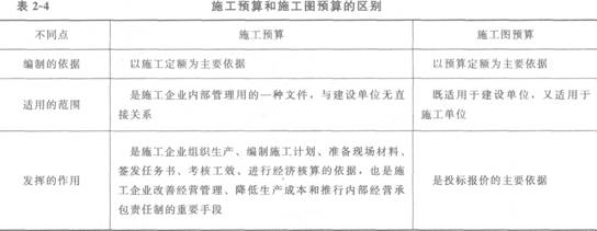 施工預算和施工圖預算的區(qū)別見表2―4。