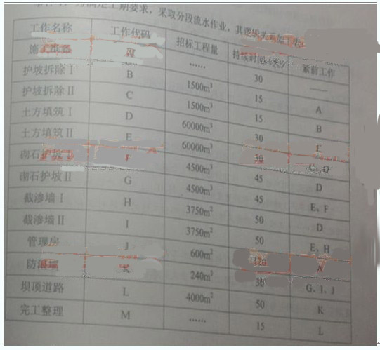 某中型水庫除險加固工程主要建設內容有:砌石護坡拆除、砌石護坡重建、土方填筑(壩體加高培厚)、深層攪拌樁滲墻、壩頂瀝青道路、混凝土防浪墻和管理房等。計劃工期9個月(每月按30天計)。合同約定:①合同中關鍵工作的結算工程量超過原招標工程量15%的部分所造成的延期由發包人承擔責任;②工期提前的獎勵標準為10000元/天,逾期完工違約金為10000元/天。