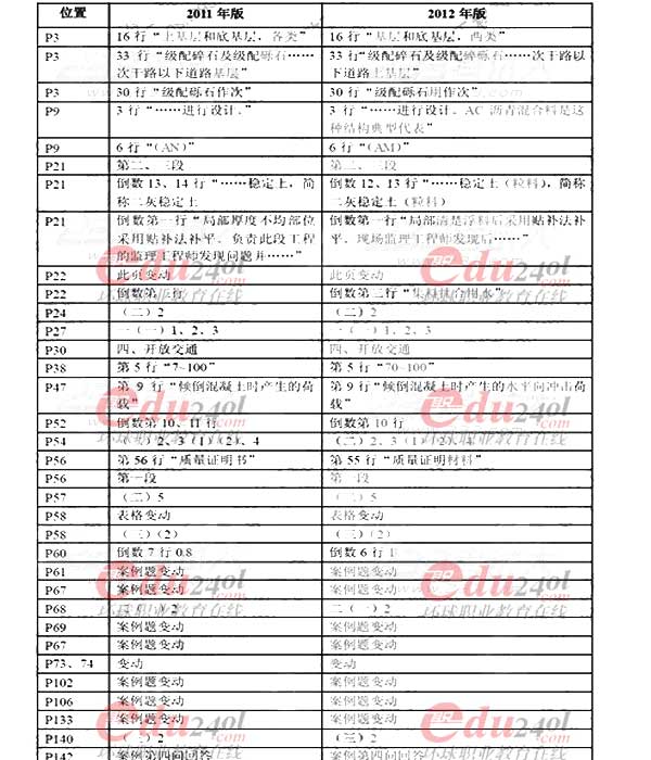 一級(jí)建造師市政工程考試新舊教材對(duì)比(2011、2012年)
