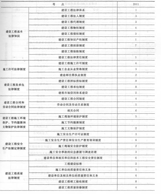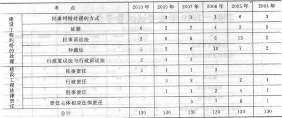 度考試試卷考點分值統計仍按相應年度教材章節進行統計。2004―2010年度考試試卷考點分值統計僅供考生參考,考點