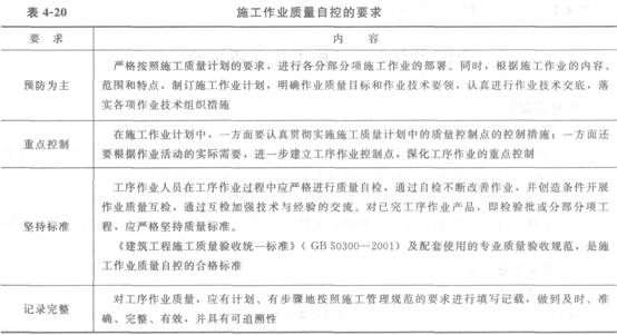 施工作業質量自控的要求見表4―20。