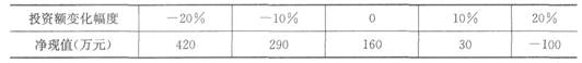 24.某建設(shè)項(xiàng)目以財(cái)務(wù)凈現(xiàn)值為指標(biāo)進(jìn)行敏感性分析的有關(guān)數(shù)據(jù),如表2所示,則該建設(shè)項(xiàng)目投資額變化幅度的臨界點(diǎn)是( )。