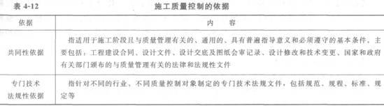 施工階段質量控制目標;共同性依據;專門技術法規性依據;事前質量控制;事中質量控制;事后質量控制。