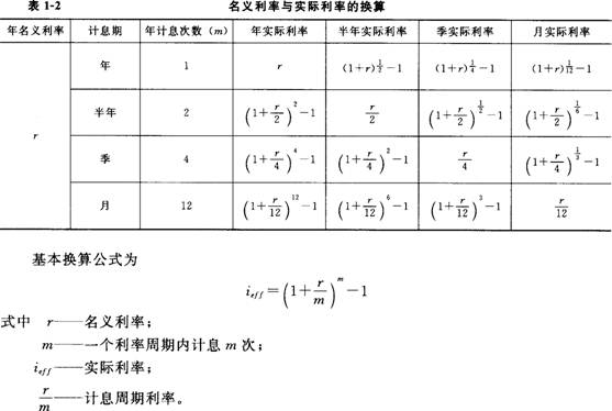 名義利率;計息周期有效利率;年有效利率;名義利率與實際利率的換算。