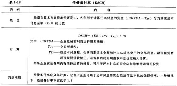 主要有:借款償還期、利息備付率、償債備付率、資產負債率、流動比率和速動比率。