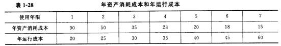 1.某設備在不同的使用年限(從1年到7年)下,年資產消耗成本和年運行成本見表1-28(單位:萬元)。則該設備的經濟壽命為()年。