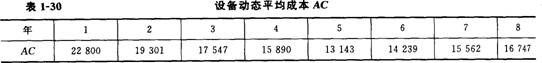 2.某設備物質壽命為8年,各年的動態年平均成本AC見表1-30,則其經濟壽命為()年。