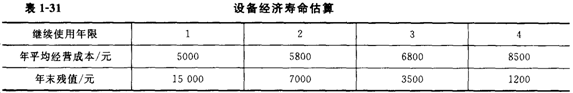 1)如果舊設備繼續使用1年的年平均使用成本低于新設備的年平均使用成本,即: