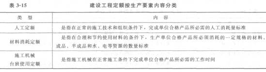 建設工程定額按生產要素內容分類見表3-15。
