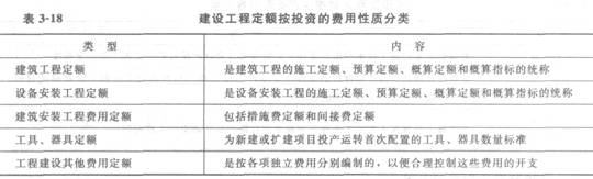 建設工程定額按投資的費用性質分類見表3―18。