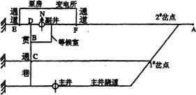 ②在主、尉井貫通巷和主井繞道采用壓入式通風(fēng)(3分),井筒內(nèi)不增加風(fēng)筒(2分)。優(yōu)點是改裝簡單,缺點是井筒內(nèi)環(huán)境較差(2分)。