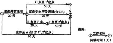 第二個工作隊:主副貫通巷→B點至F點→F點至2岔點,即①→②→③→⑤(1分)。