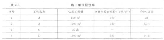 4.事件3中C工作發生的費用不予結算,因施工單位對C工作的費用沒有報價,故認為該項費用已分攤到其他相應項目中。