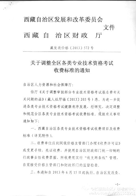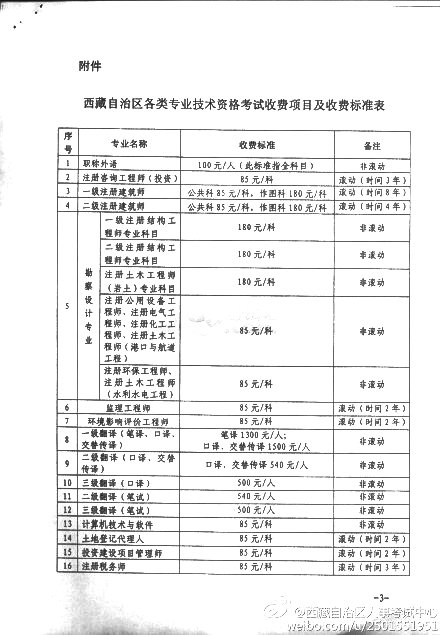 根據西藏人事考試中心官方微博發布的《關于調整全區各類專業技術資格考試收費標準的通知》獲悉,西藏一級建造師考試費用為: