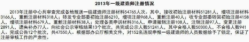 住建部的執業資格注冊中心,在2013年12月底發布了一個簡報,算是對于今年的一個總結吧。中間有這么一段關于一建的數據: